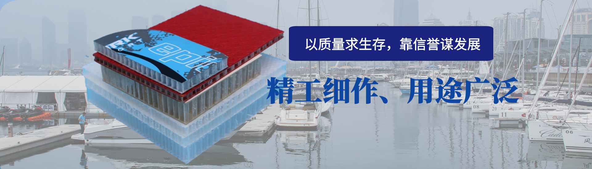 青島凱博新型復合材料有限公司成立于2013年,主要從事聚丙烯(pp)蜂窩芯材、熱塑性蜂窩復合板材的研發、生產和銷售。新型塑料蜂窩作為一種新型環保材料,具有重量輕、強度高,耐水耐腐蝕,絕緣,隔音等特點,可以復合玻璃鋼、木材、亞克力板等,產品應用范圍十分廣泛,常見于游艇,貨車廂體、房車,球拍,櫥柜墊板,石材復合,建筑模板等諸多領域。凱博新材具有較強的研發改進能力,技術和管理人員有多年的行業經驗,不斷吸取先進的管理理念和技術工藝,并結合國內外行業應用現狀,堅持以應用實用為導向,以創新研發為競爭力,以質量管理為生命線,為新材料在各個行業得到充分合理的應... [MORE + ]